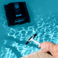 De nouvelle génération, le robot Dolphin Liberty 300 se charge par induction (connexion magnétique). Summum du confort, utilisez sa fonction Click Up en fin de cycle : une mini perche vous permet de le rappeler. Le robot remonte alors tout seul la paroi pour que vous puissiez le saisir facilement.